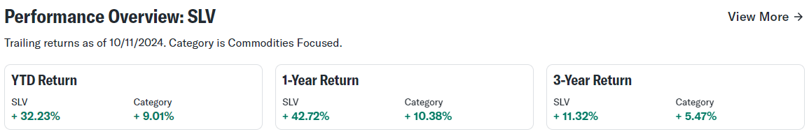 2024년, SLV ETF의 수익률은 약 32%에 달했습니다. 이는 최근 은 가격의 회복 덕분입니다. 특히 은은 전 세계적으로 산업용으로도 많이 사용되고, 태양광 패널 등 친환경 기술에서 중요한 자원으로 쓰이면서 수요가 꾸준히 증가하고 있습니다. 이런 배경 덕분에 은의 가치는 앞으로도 상승할 가능성이 큽니다.