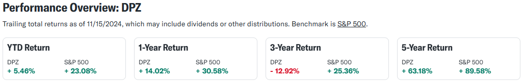 도미노 피자는 꾸준히 배당금을 지급하는 배당 성장주입니다. 최근 분기별 배당금은 주당 $1.21이며, 연간 배당 수익률은 1.6% 수준입니다. 2024년에는 배당금이 $1.32로 증가할 것으로 예상됩니다. 배당락일은 12월 27일로 예정되어 있으며, 이는 장기적인 주주 가치를 높이기 위해 배당 정책을 개선한 결과입니다.